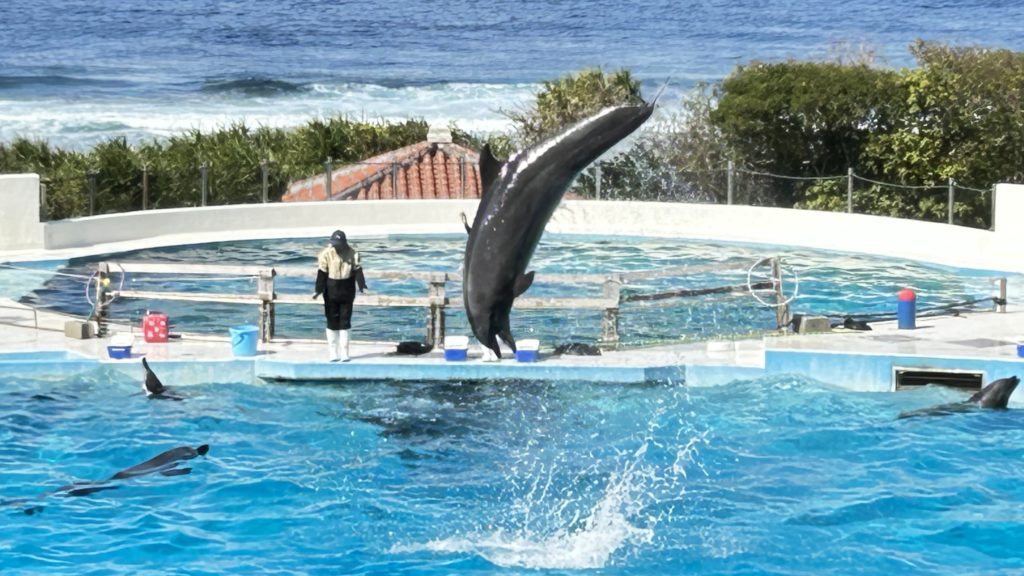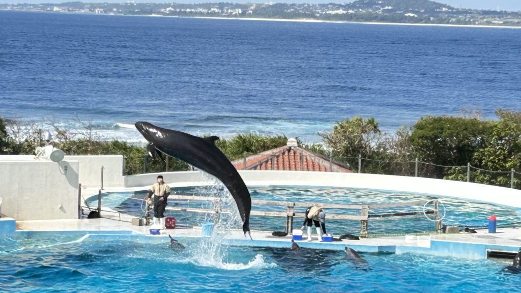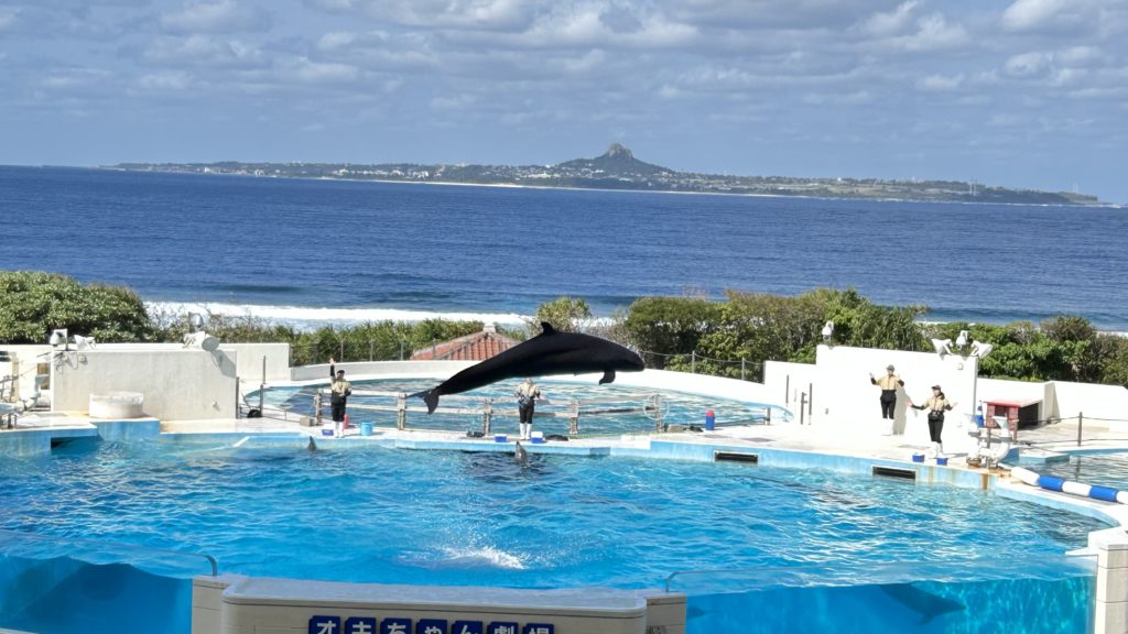 海洋博公園のイルカ🐬ショー癒されるわ😀