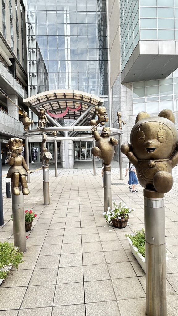高岡駅前にはウイング・ウイング高岡広場に「ドラえもんの散歩道」と名付けられた広場があります。