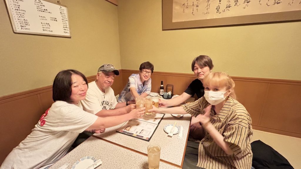 ライブ後はオーナーかよさん、PAのみのさん、今回、企画をして頂いた蔵坪さん、ひろさんと打ち上げです😀🍻