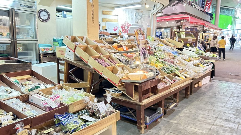 鮮魚、青果、精肉、かまぼこ、乾物、塩干、漬物、酒、駄菓子、惣菜、花、セトモノ、洋品雑貨など様々なものが販売されてます。