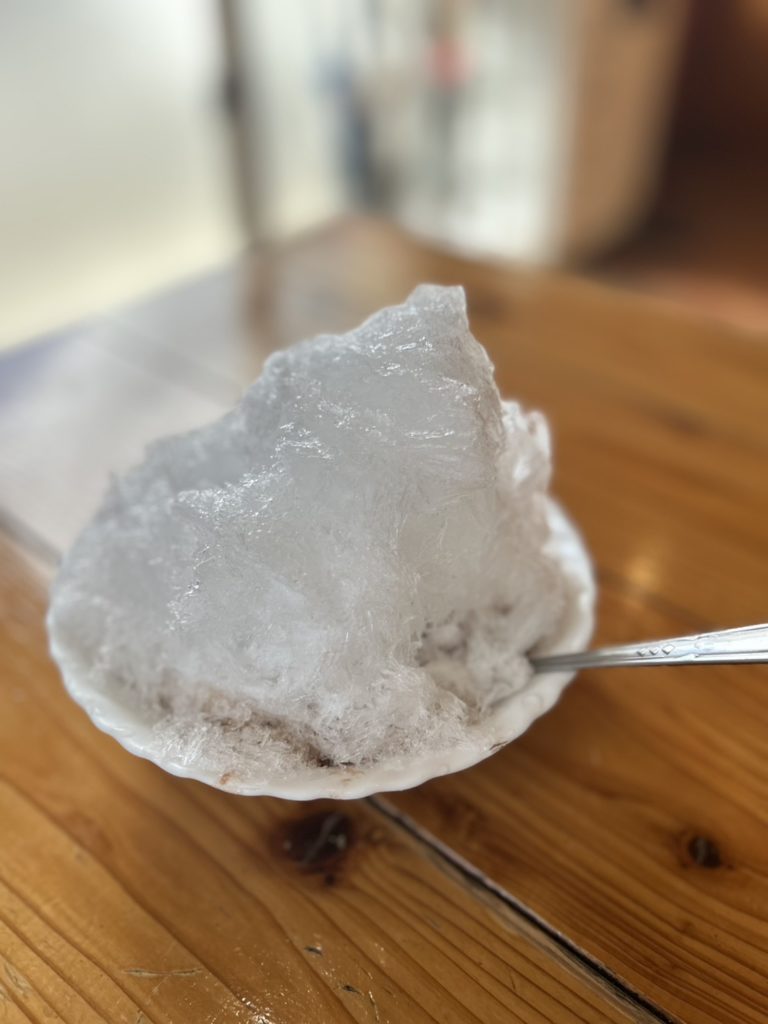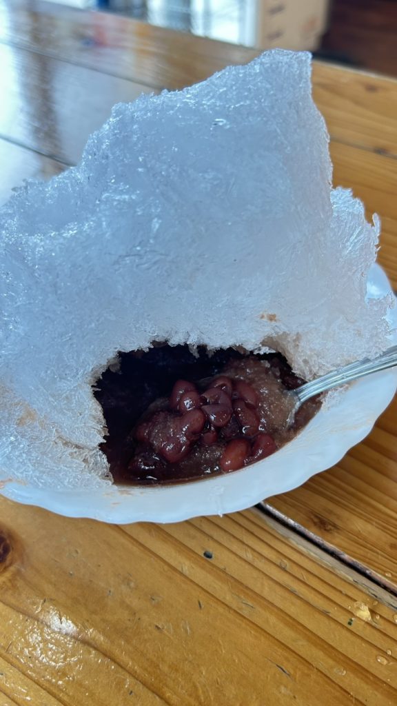 シャリシャリ氷の中には、先代から受け継がれてきた金時豆が隠れています。